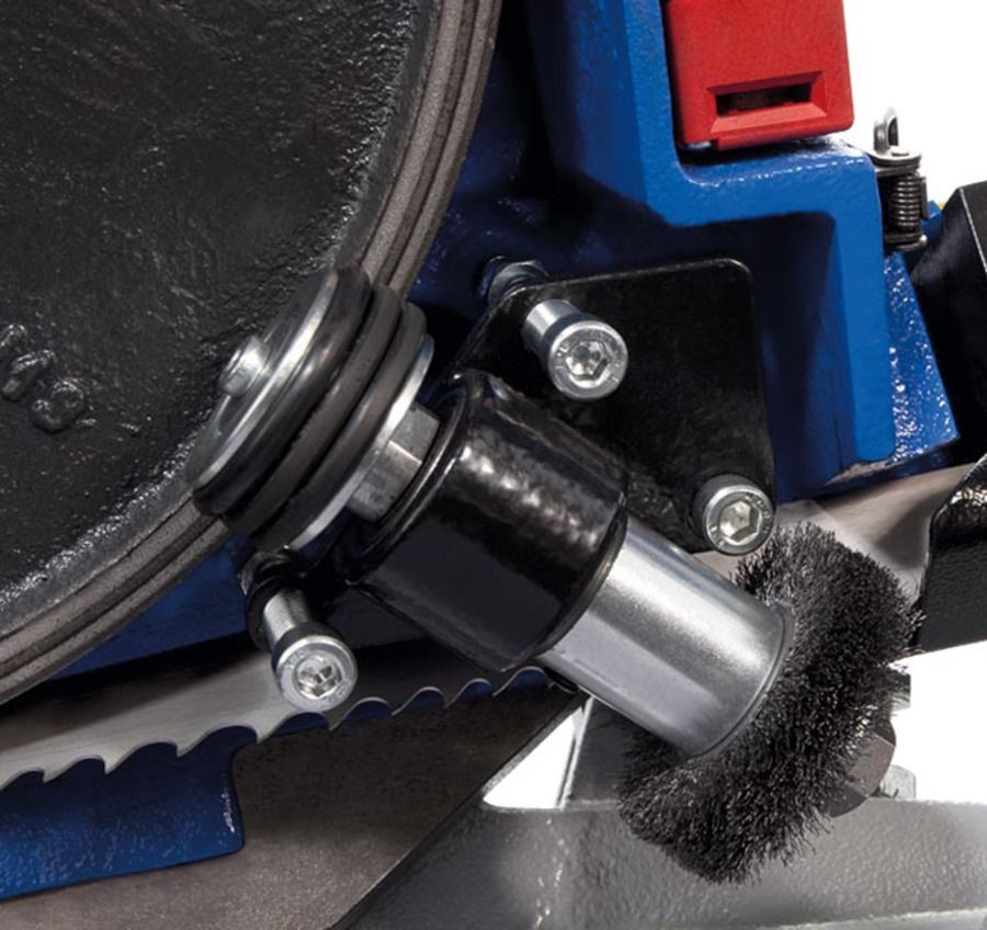 Стальная щетка, приводимая в движение ведомым шкивом. Используется для удаления стружки с ленточного полотна.