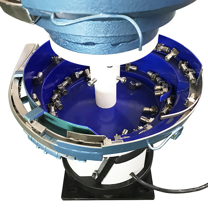 Под верхней чашей находится импульсный электромагнит, который может заставлять чашу вибрировать в вертикальном направлении, а наклонная пружинная пластина заставляет чашу совершать крутильную вибрацию вокруг ее вертикальной оси. За счет этой вибрации детали в чаше поднимаются по спиральной дорожке. После серии орбитальных проверок или изменений положения во время процесса подъема детали могут автоматически войти в положение сборки или обработки в едином состоянии в соответствии с требованиями сборки или обработки. Его рабочая цель состоит в том, чтобы посредством вибрации автоматически и упорядоченно расположить неупорядоченные детали для следующего процесса.