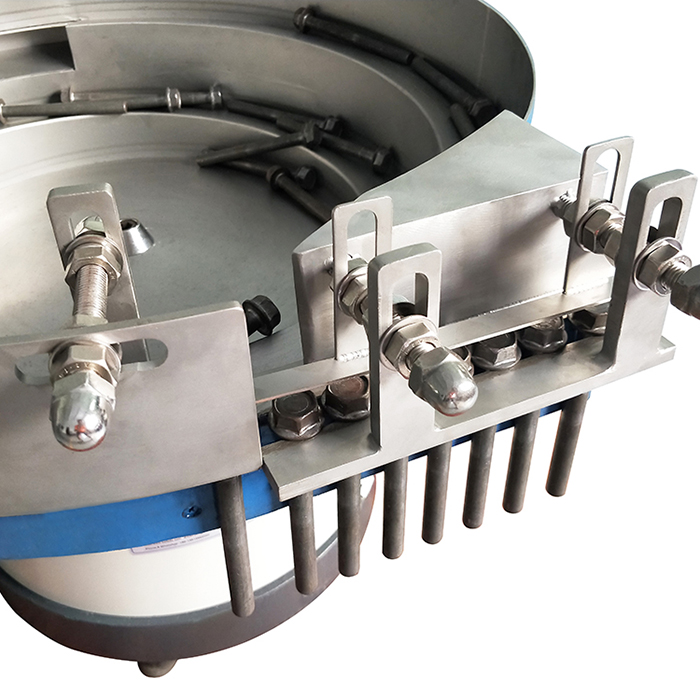 Под верхней чашей находится импульсный электромагнит, который может заставлять чашу вибрировать в вертикальном направлении, а наклонная пружинная пластина заставляет чашу совершать крутильную вибрацию вокруг ее вертикальной оси. За счет этой вибрации детали в чаше поднимаются по спиральной дорожке. После серии орбитальных проверок или изменений положения во время процесса подъема детали могут автоматически войти в положение сборки или обработки в едином состоянии в соответствии с требованиями сборки или обработки. Его рабочая цель состоит в том, чтобы посредством вибрации автоматически и упорядоченно расположить неупорядоченные детали для следующего процесса.